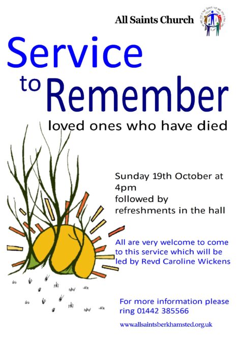 4.00pm – Memorial Service led by Revd Caroline Wickens